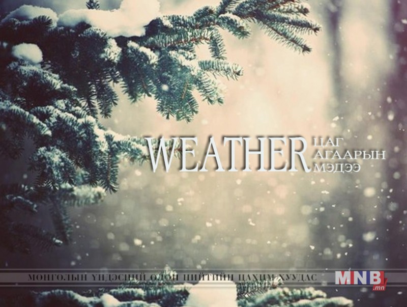УЛААНБААТАР ХОТ: Үүлшинэ. Цас орохгүй. Салхи баруун өмнөөс секундэд 5-10 метр, өдөртөө зарим үед секундэд 12-14 метр хүрч ширүүснэ. Шөнөдөө 14-16 хэм, өдөртөө 2-4 хэм хүйтэн байна.
