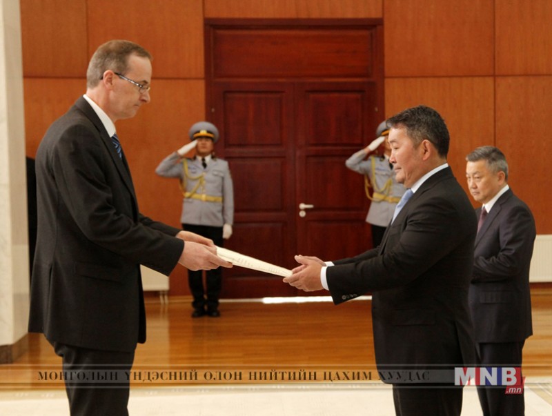Монгол Улсын Ерөнхийлөгч Х.Баттулгад өнөөдөр Их Британи Умард Ирландын Нэгдсэн Вант Улс (ИБУИНВУ)-аас Монгол Улсад суух Онц бөгөөд Бүрэн эрхт Элчин сайд Филип Мэлоүн Итгэмжлэх жуух бичгээ өргөн барилаа.