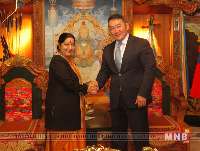 Монгол Улсын Гадаад харилцааны сайд Д.Цогтбаатарын урилгаар Монгол Улсад албан ёсны айлчлал хийж байгаа Бүгд Найрамдах Энэтхэг Улсын Гадаад хэргийн сайд Сушма Свараж өнөөдөр Монгол Улсын Ерөнхийлөгч Х.Баттулгад бараалхлаа.