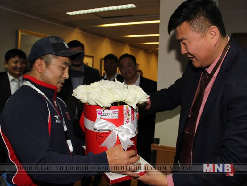 Түүнийг НБУГ-ын дарга Д.Эрдэнэбаатар, Дэд дарга С.Мөнхнасан, АБХА-ны дарга М.Гүен болон ажлын хамт олон, аав ээж, гэр бүл, ах дүү нар нь угтан авч баяр хүргэлээ.