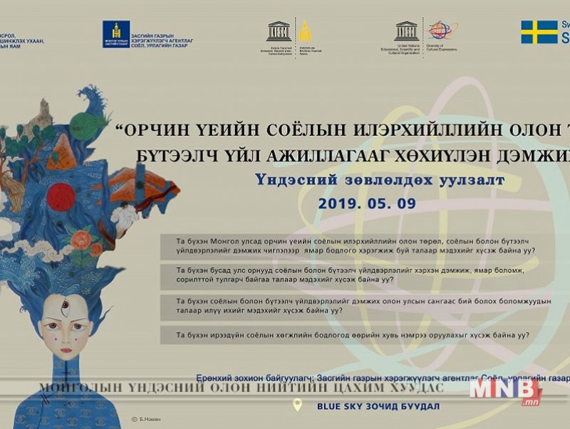 | "Орчин үеийн соёлын илэрхийллийн олон төрөл, бүтээлч үйл ажиллагааг хөхиүлэн дэмжих нь" үндэсний зөвлөлдөх уулзалт болно | ||