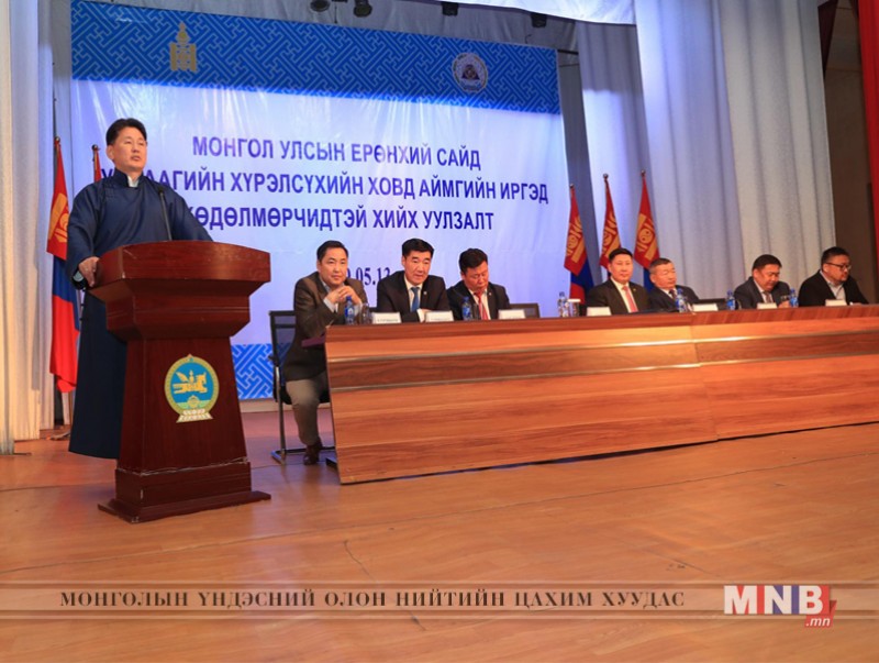 Монгол Улсын Ерөнхий сайд У.Хүрэлсүх Ховд аймагт ажиллах үеэрээ иргэдтэй уулзалт хийж, Засгийн газраас хэрэгжүүлж буй бодлого шийдвэрээ танилцуулж, иргэдийн санал, хүсэлтийг сонсч, тэдний асуултад хариуллаа. Ерөнхий сайд уулзалтын эхэнд Засгийн газрын гурван том зорилтын талаар танилцууллаа.
