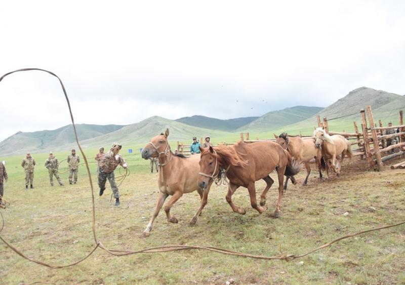 Усан саадаар урсгал ширүүн гол туулж, минийн саадыг давах бол морь сэлгэх даалгавраар адуун сүргээс морь бугуйлдаж уналгад бэлдэх юм. Харин гуравдугаар шат болох ойрын зайны холимог буухиагаар оролцогч орны баг тамирчид явганаар 3.1 км, морьтой 4.1 км замыг туулахдаа мөн маршрутын дагуу байрлах цэгүүдэд өгөгдсөн гранат шидэх, саадын зурвас туулах, буудлагын дасгал гүйцэтгэх, тактикийн ажиллагаа, морины давхилт дунд гранат шидэх зэрэг таван даалгаврыг гүйцэтгэн барианд орохоор уралдааны дүрэмд заажээ. Төгсгөлд нь тэмцээний дүнг нэгтгэж, уралдаанд амжилт үзүүлсэн баг тамирчдад шагнал гардуулах ёслол болох юм.