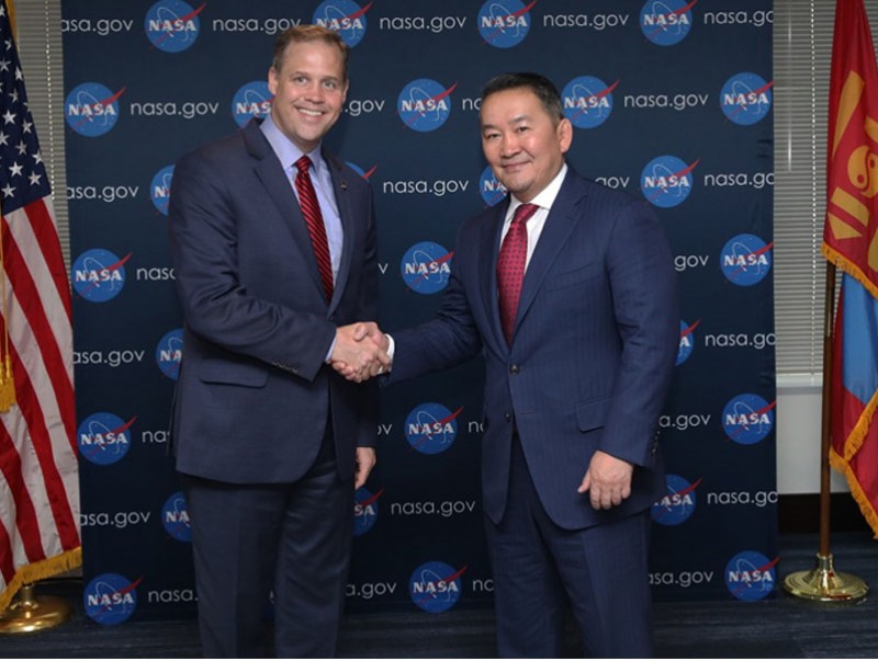 Энэ үеэр Монгол Улсын Ерөнхийлөгч Х.Баттулга 1981 оны гуравдугаар сарын 22-ны өдөр Монгол Улсын иргэн Ж.Гүррагчаа Союз хөлгөөр сансарт ниссэн түүхэн үйл явдлыг дурсан ярьж, монгол эмэгтэйг сансрын нисэгчээр “NASA”-д сургах, хамтран ажиллах хүсэлтэй буйгаа илэрхийлсэн юм. Мөн одон орон, геофизикийн чиглэлээр “NASA”-тай хамтран ажиллах өргөн боломжтой тул “NASA”-гийн дарга Ж.Брайданстаныг Монгол Улсад хүрэлцэн ирэхийг урив.