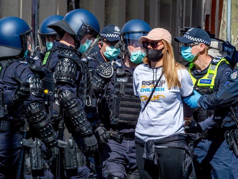 Мельбурн хотод ням гарагт болсон хууль бус эсэргүүцлийн хөдөлгөөнд 250 хүн оролцсон байна. Далайн эргийн Мельбурн хот нь Виктория мужийн нийслэл. Виктория муж нь Австрали улс дахь цар тахлын халдварын хамгийн том голомт болоод байсан юм.