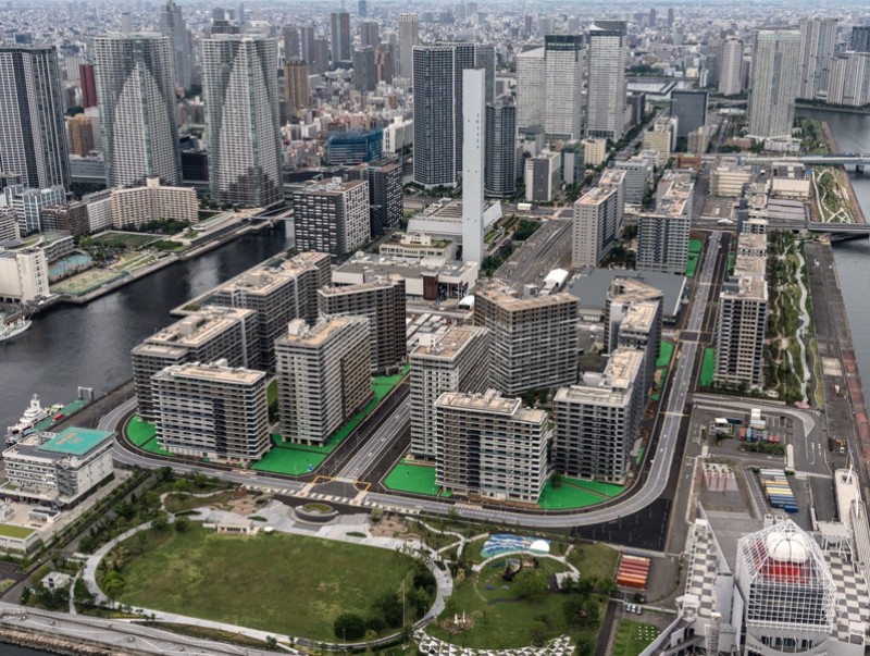 Тосгон нь Токиогийн далайн эрэг орчмын Харүми дүүрэгт, Үндэсний цэцэрлэгт хүрээлэнгээс зургаан км-ийн зайд байрладаг. Тосгонд тамирчид байрлах 1800 гаруй барилга бий. Энд олимпын турш 18 мянга орчим зочин төвхнөх юм.