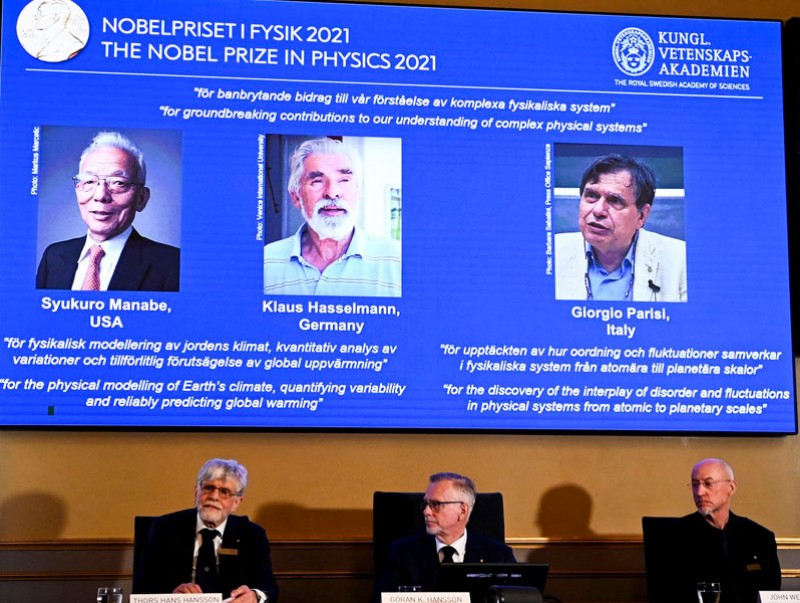 Тодруулбал, Японы эрдэмтэн 90 настай Сюкуро Манабе, Германы эрдэмтэн Клаус Хассельман нар дэлхийн цаг уурын физик загварчлал, хувьсах хэмжигдэхүүнийг хэмжих, дэлхийн дулаарлыг бодитоор урьдчилан таамагласныхаа төлөө хүртэж байна.