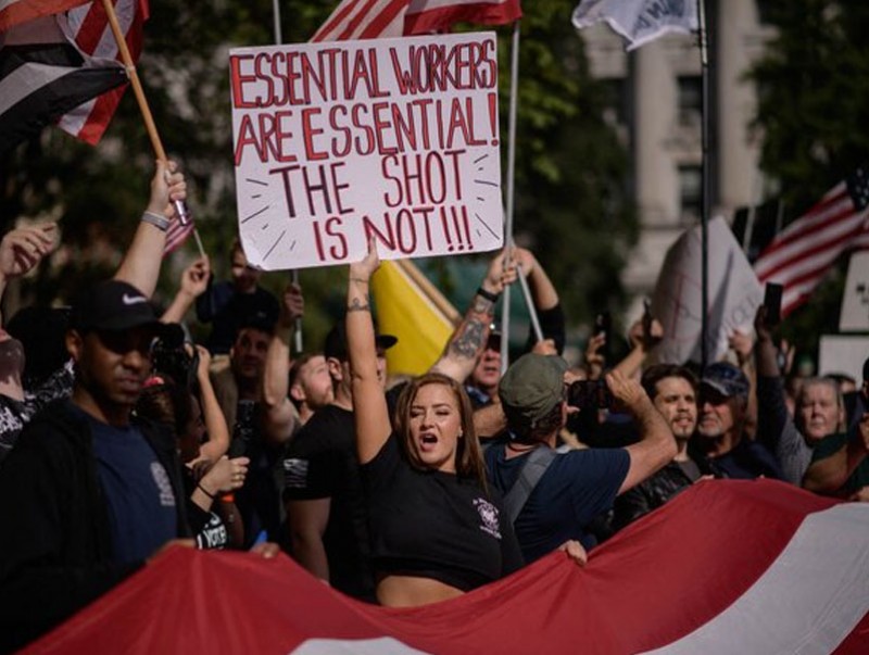 АНУ-ын Засгийн газраас 100 ба түүнээс дээш ажилтантай ААН-дэд ирэх оны нэгдүгээр сарын 4 гэхэд бүх ажилчдаа вакцинд хамруулах, эсвэл долоо хоногт нэг удаа коронавирусний шинжилгээнд хамруулах шаардлага тавьсан нь олон мужид жагсаал цуглаан гарахад хүргэлээ.