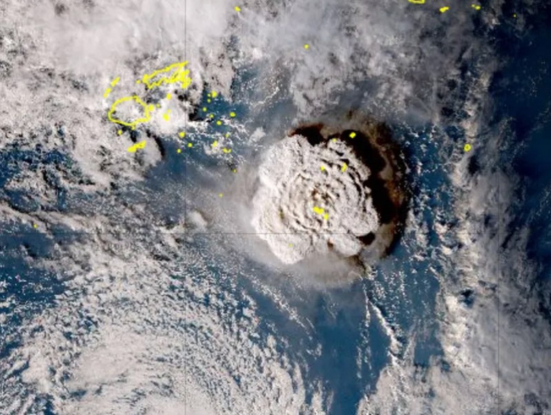 Усан доорх асар том галт уулын дэлбэрэлтийн улмаас метр гаруй долгион Тонга руу унасан байна. Хиймэл дагуулаас авсан зургуудаас харахад галт уулын утаа төвлөрсөн байдлаар тархаж байгааг харуулжээ. Галт уул дэлбэрснээс нэг цагийн дараа утаа 200 км-ийн диаметртэй газрыг бүрхсэн байна.