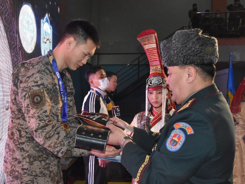 Тэмцээний шагналыг ЗХЖШ-ын Ажиллагааны удирдлагын газрын дарга бригадын генерал С.Дашзэвэг, Зэвсэгт хүчний Тусгай хүчний цэргийн штабын дарга хошууч генерал Л.Гансэлэм, ЗХЖШ-ын Сургалтын бодлого, зохицуулалтын хэлтсийн Биеийн тамир, спортын тасгийн дарга, Монгол Улсын гавьяат дасгалжуулагч, хурандаа Д.Цог-Эрдэнэ нар гардуулан өгсөн юм гэж Зэвсэгт хүчний Жанжин штабаас мэдээллээ.