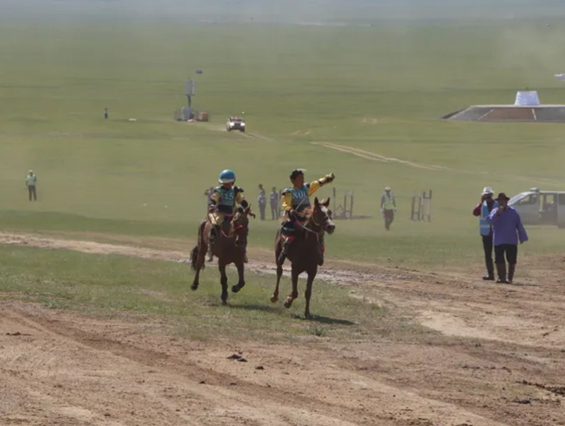 Тэдгээрээс Өвөрхангай аймгийн Хужирт сумын уяач Пүрэвийн Батсайханы тогоруу зээрд (уралдаанч Цогтбаатарын Пүрэвбаатар, 12 настай, эрэгтэй) түрүүлж, наадамчин олныг баясгалаа.