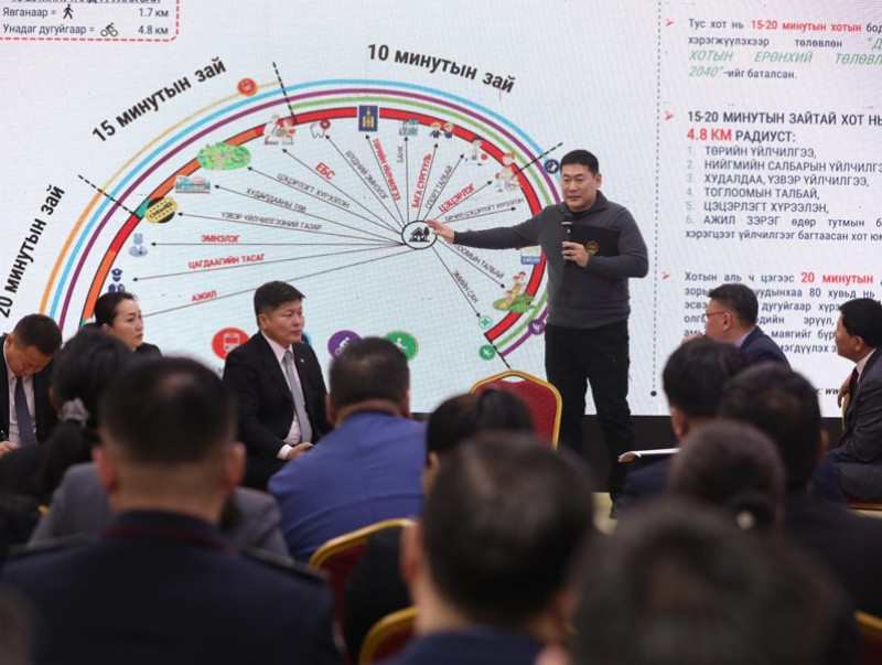 Монгол Улсын хүн амын тал хувь нь амьдардаг Улаанбаатар хотын ужгирсан бүх асуудал төлөвлөлтийн алдаатай шууд холбоотой. Нийслэлийн даац хэтэрсэн учраас өнөөдрийн бүх хүндрэл бий болсон. Үүнийг засахын тулд Засгийн газар онцгой анхаарна гэдгийг Ерөнхий сайд онцлов. Нийслэлийн хүн амын хэт төвлөрөл өнгөрсөн 30 жилд бодлогогүй явж ирсний балгаар хяналтаас гарсан. Агаарын бохирдол, авто замын түгжрэл, нийтийн тээврийн хүрэлцээ, хогны тээвэр, хороо, хэсэгт ажиллах хүний нөөцийн дутагдал зэрэг хүндрэл, бэрхшээл бүрийг шийдвэрлэхийн тулд Засгийн газраас нийслэлийг бүсчилж хөгжүүлэх төлөвлөлтийг хийж буйгаа Ерөнхий сайд танилцууллаа.