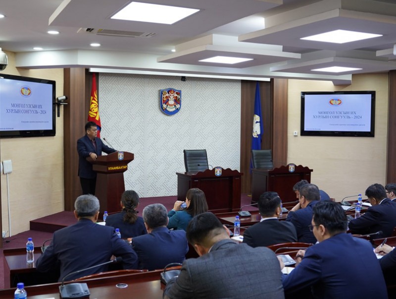 Монгол Улсын Их Хурлын сонгуулийн тухай хуулийн хэрэгжилтийг хангах, Улсын Их Хурлын 2024 оны ээлжит сонгуулийн зохион байгуулалт, хэсгийн хороодод ажиллах төрийн захиргааны болон үйлчилгээний ажилтнуудын нөөц бүрдүүлэх, томилох болон санал авах байр бэлтгэх, санал авах, дүн гаргах, хяналтын тооллого хийх, нээлттэй ил тод байдлыг хангах талаар Сонгуулийн ерөнхий хорооны Мэдээлэл, судалгаа, сургалтын төвийн референт Б.Нямсүрэн сургалт, зөвлөмж өгөв.