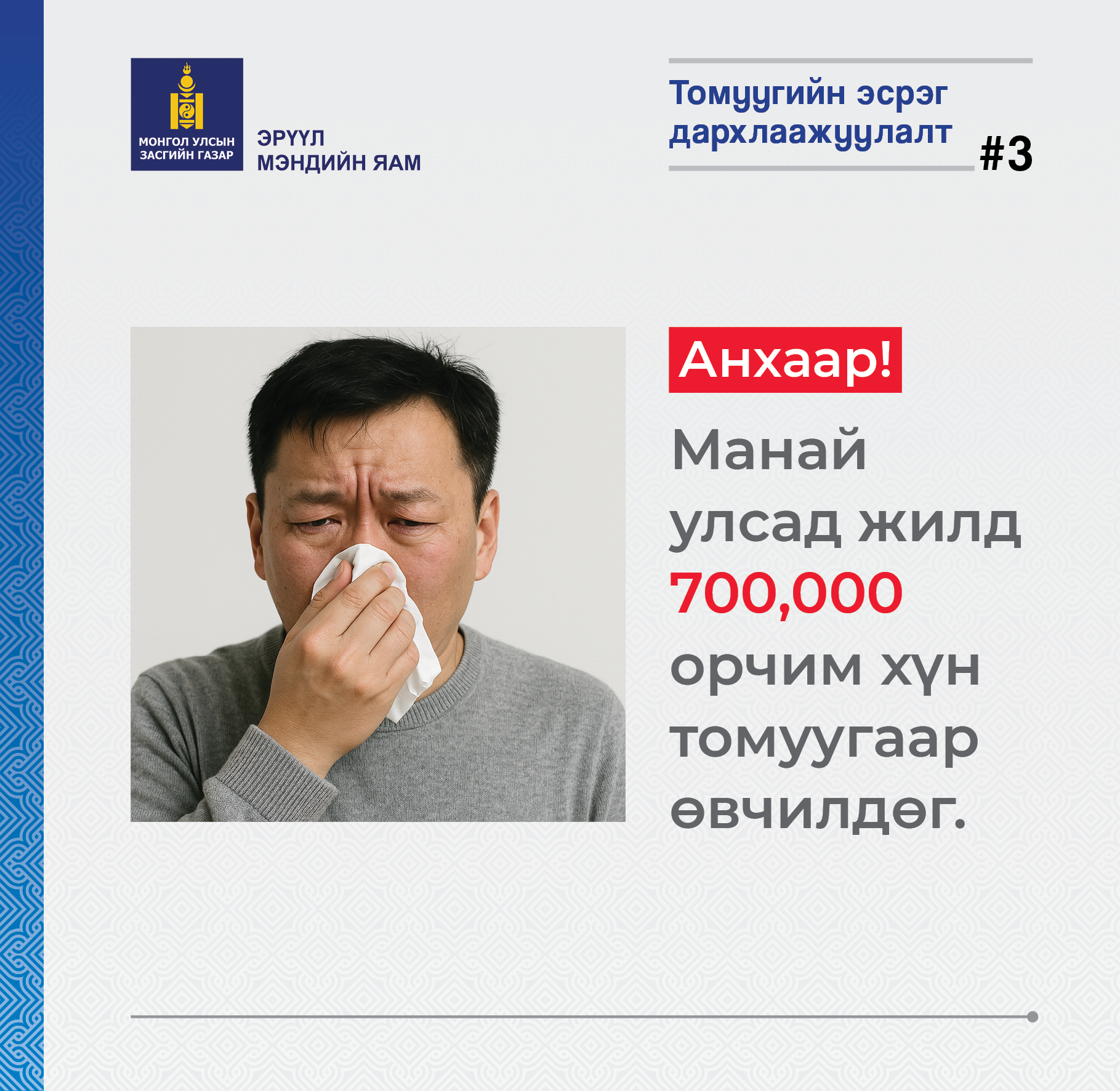 - Өрх, сумын эмнэлэгтээ хандаж томуугийн эсрэг вакцинаа хийлгээрэй.