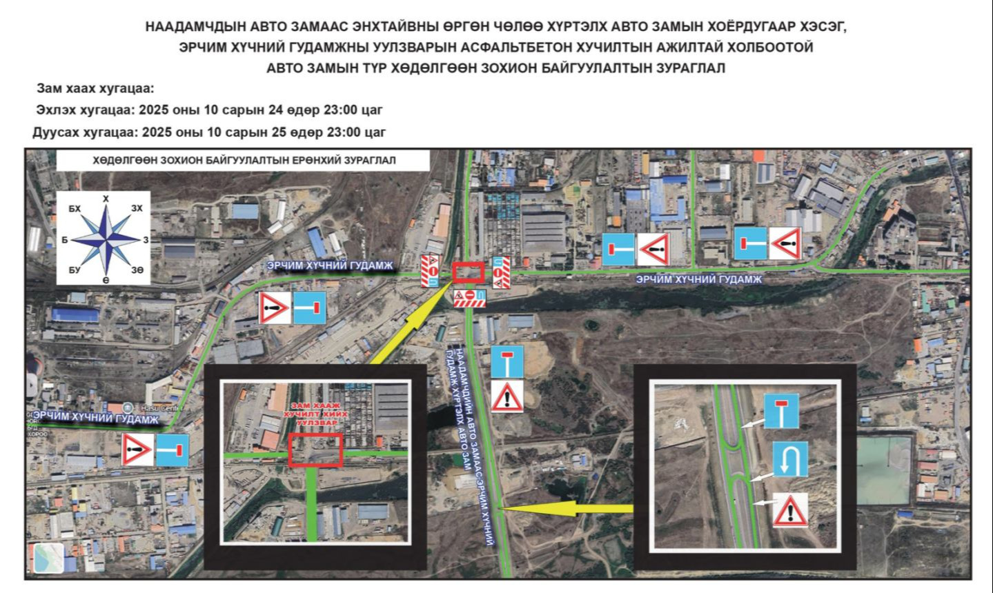 Тодруулбал, Баянгол дүүргийн 20 дугаар хороо Наадамчдын авто замаас Энхтайваны өргөн чөлөө хүртэлх авто замын хоёрдугаар хэсэг, Эрчим хүчний гудамжны уулзварыг 2025 оны аравдугаар сарын 24-ний 23:00 цагаас 2025 оны аравдугаар сарын 25-ны 23:00 цагийн хооронд хааж асфальтбетон хучилтын ажил хийнэ.