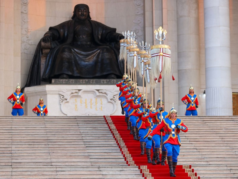 Эзэн Богд Чингис хааны мэндэлсний 863 жилийн ой, “Монгол бахархлын өдөр”-ийг тохиолдуулан жанжин Д.Сүхбаатарын талбайд Төрийн далбааг мандуулж, Төрийн есөн хөлт Их цагаан тугийг нар зөв гороолон цэнгүүллээ.