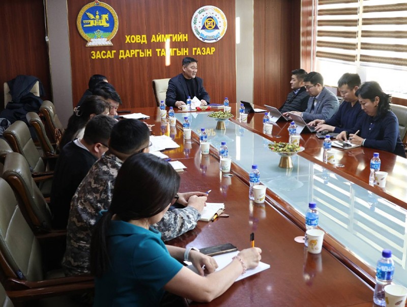 Ажлын хэсэг Засгийн газрын 2025-2026 оны өвөлжилт, хаваржилтын бэлтгэл хангах зарим арга хэмжээний тухай 56 дугаар тогтоолын хэрэгжилтийн хүрээнд Ховд аймгийн Засаг дарга М.Амарсанаа болон ХХАГ, Мал эмнэлгийн газрын удирдлагуудаас аймаг сумын өвөлжилт, хаваржилтын бэлтгэл, цаг үеийн нөхцөл байдлын талаар мэдээлэл сонсож, салбарын тулгамдаж буй асуудлаар ярилцлаа. Мөн "Шинэ Ховдын үйлдвэр технологийн парк"-ын бүтээн байгуулалтын явцтай танилцав.
