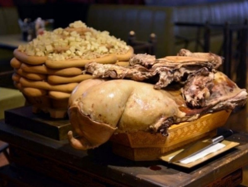 Малын махны толгой хэсэг нь эх тал нь болох бөгөөд эх талаар нь зочин руу харуулан тавина.