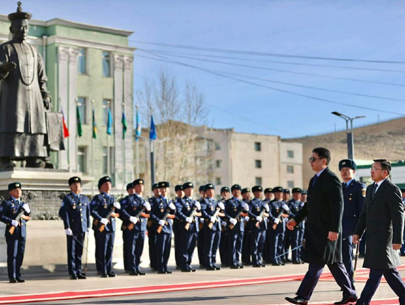 Монгол Улсын Ерөнхийлөгчийг Жалханз хутагт Ц.Дамдинбазарын нэрэмжит төв талбайд хүрэлцэн ирэхэд Улиастай цэргийн хүрээний хүндэт харуул угтаж авлаа.