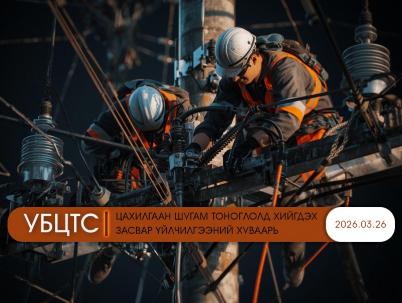 Өнөөдөр буюу 2026 оны гуравдугаар сарын 26-ны Пүрэв гарагт цахилгаан шугам сүлжээнд хийх засварын хуваарийг танилцуулж байна.