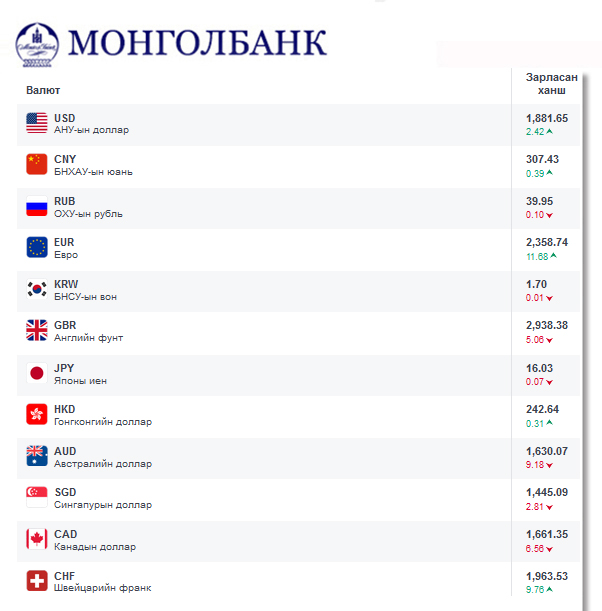 Өнөөдрийн байдлаар валютын ханш Монголбанк, арилжааны банкууд болон валютын захууд дээр ямар байгааг хүргэе...
