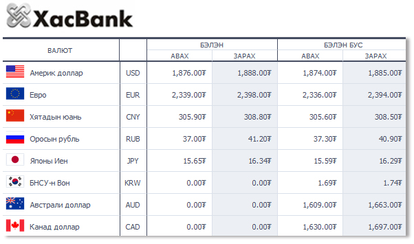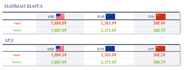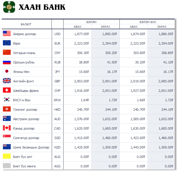 | Өнөөдрийн валютын ханш /2014.11.20/ | ||