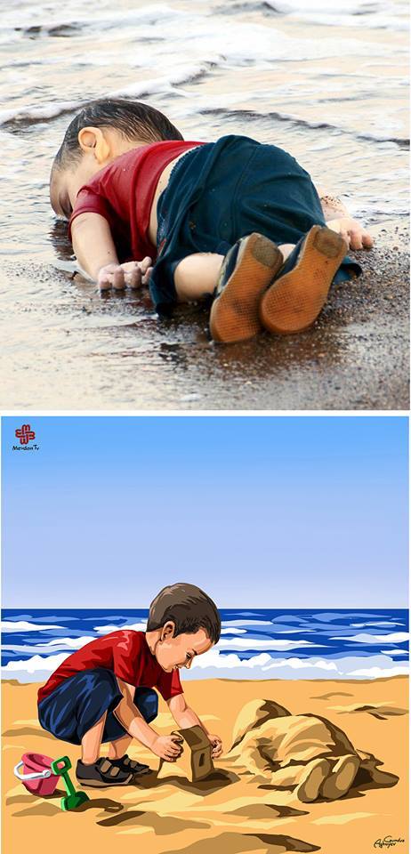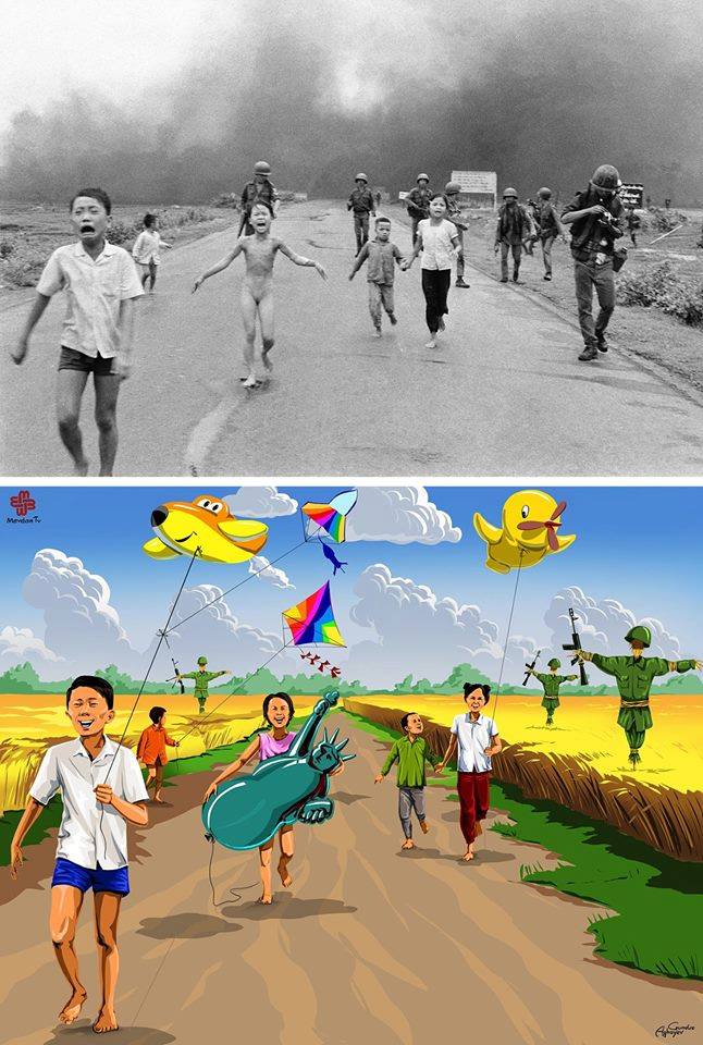 "Gunduz Aghayev" хэмээх залуу дэлхий нийтийг цочирдуулсан, аймшигт түүхийг илэрхийлэх бодит зургуудыг өөрчлөн зуржээ. Ингэхдээ тэрбээр энэ зургууд тэдгээр эмгэнэлт түүхийг илэрхийлээгүй бол ямар байх байсан талаар дүрслэн үзүүлсэн байна.