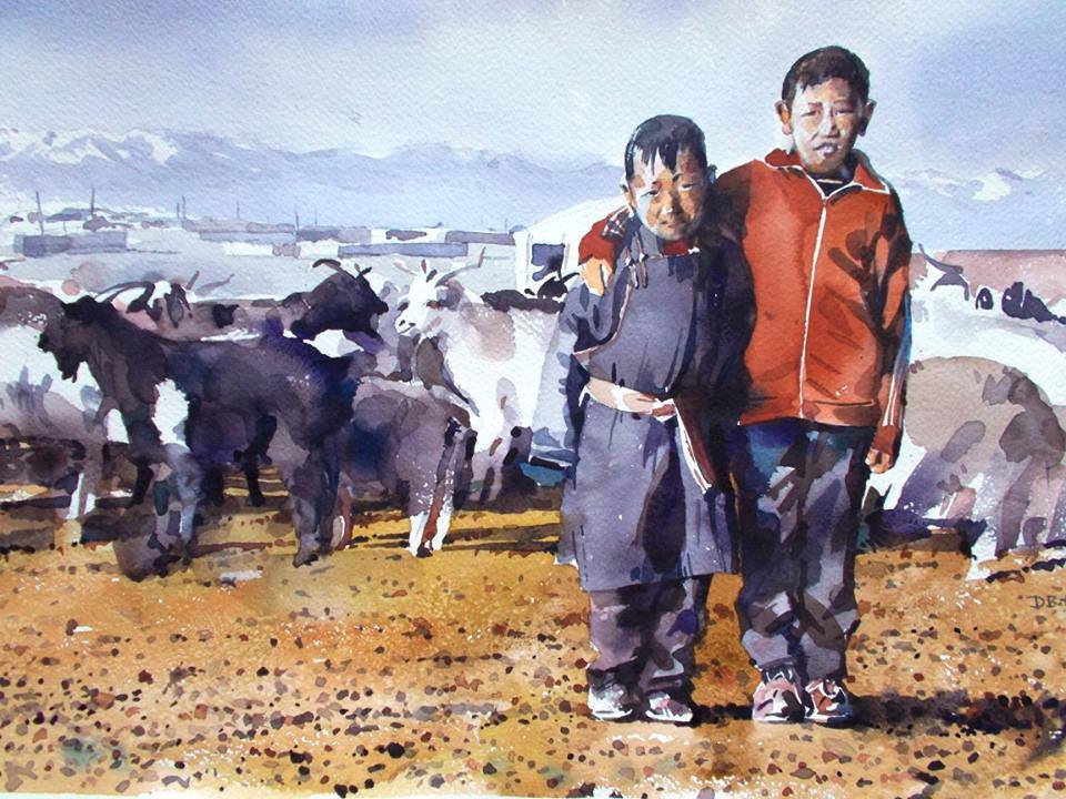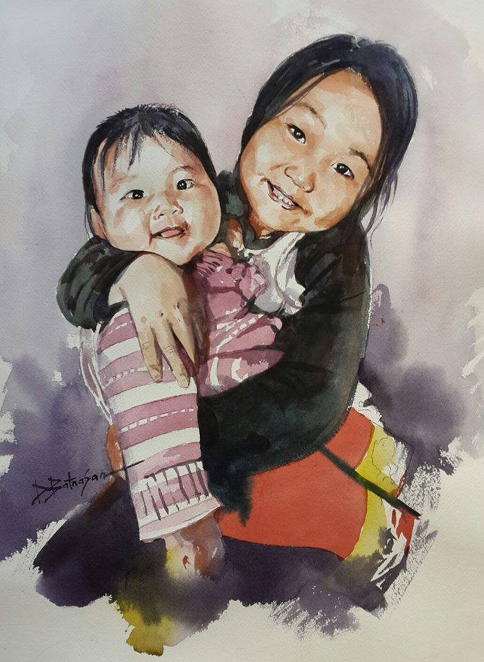 Зураач Д.Батнасангийн зурсан бяцхан хүүхдүүдийн зургийг хүргэж байна. Нүүрэндээ нар зурж буй багачуудтай танилцана уу.
