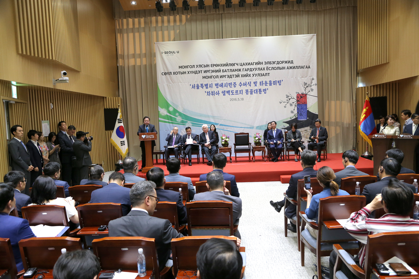 “Энд хүрэлцэн ирсэн манай иргэдийн зүгээс бидэнд хандаж хэлэх санал, мөн асуулт байвал албаны хүмүүстэй хамтдаа та бүхний асуулт, санал хүсэлтэд хариулъя гэж бодож байна. Энд би зүгээр товчхон хоёр, гурван зүйлийг мэдээлье гэж бодсон. БНСУ мэдээллийн технологи маш өндөр хөгжсөн улс. Энд ажиллаж байгаа иргэд Монголын тухай мэдээллийг байнга шууд авч байгаа учраас би олон зүйлийг нурших хэрэггүй байх гэж бодож байна. Ер нь гадаад улс оронд ажиллаж байгаа ард иргэдтэй ярилцахад асууж ярилцдаг хэдэн зүйл байдаг. Нэг дэх асуулт бол энд амьдарч байгаа иргэд, ялангуяа хүүхдүүдтэй холбогдсон асуудал байдаг. Саяхан би Монгол Улсын иргэний харьяатын тухай хуульд өөрчлөлт оруулах санал оруулсан байгаа. Энэ бол ялангуяа гадаадад амьдарч байгаа манай иргэдээс гардаг саналыг хуульд тусгахыг хүссэн. Энд бидний барьсан гол бодлого бол иргэдээ алдахгүй байх. Гадагшаа алдахгүй байх бодлогыг барья гэж шийдсэн. Аав, ээж хоёр нь хоёул Монгол Улсын иргэн байсан ч төрсөн хүүхдийг нь бүртгэж авдаг ч үгүй, орхичихдог хууль манайд бий. Одоо аав, ээж хоёр нь хоёул Монгол Улсын иргэн байвал төрсөн хүүхдийг нь шууд бүртгэж авдаг болно. Монголын хүүхдийн төрсний гэрчилгээ олгоно гэж байгаа. Тэгээд аав, ээжтэйгээ хамт Монгол руу ирэх хүсэлт гаргавал Монгол Улсын иргэний гадаад паспорт олгоно. Аав ээжийгээ дагаад хүүхдүүд нь эх орондоо чөлөөтэй ирэх боломжоор хангаж өгнө. Гаднын иргэн шиг хандахгүй. Монгол хүний хувиар хандах болно.