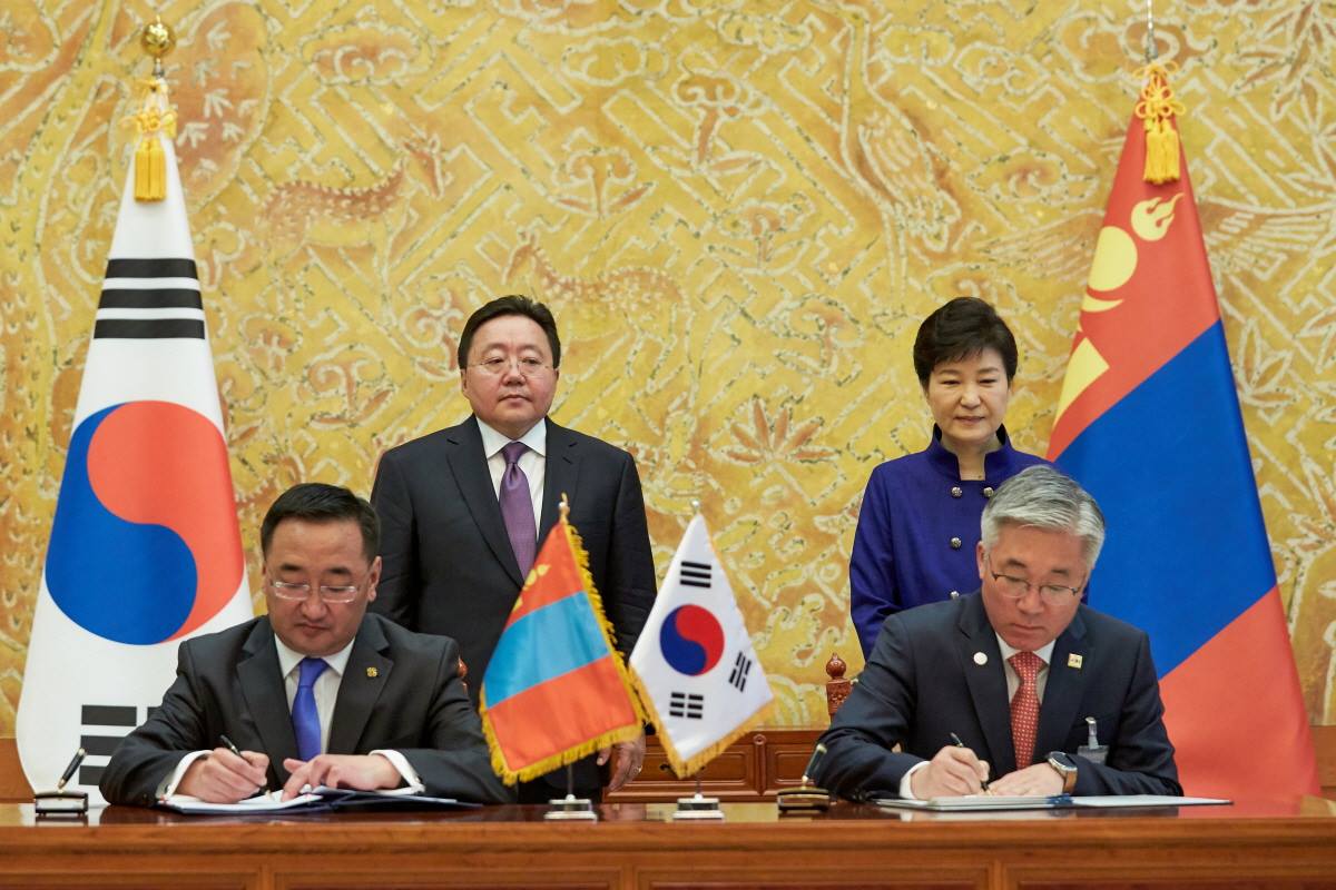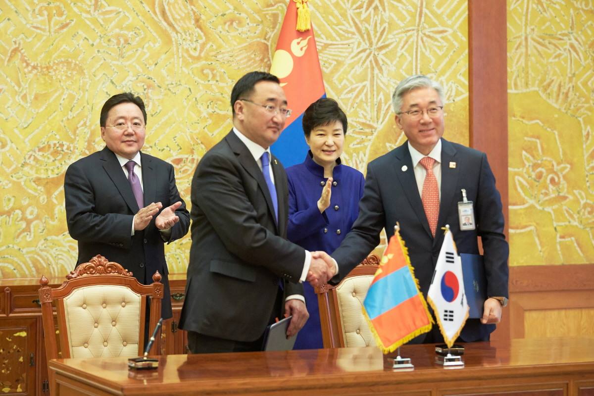 Монгол Улсын Ерөнхийлөгч Ц.Элбэгдорж, БНСУ-ын хөгжлийн албан ёсны тусламж, хөнгөлөлттэй зээл Монгол Улсын хөгжилд тодорхой хувь нэмэр оруулж ирснийг тэмдэглэж, цаашид дэд бүтэц, уул уурхай, эрчим хүч зэрэг тэргүүлэх салбар чиглэлд тодорхой төсөл хөтөлбөрийг хэрэгжүүлэх саналтай байгаагаа илэрхийлэв. Мөн Улаанбаатар-Пүсаны чиглэлд 2016 оны 6 дугаар сараас байнгын нислэг үйлдэж эхлэх болсоныг дурдав.